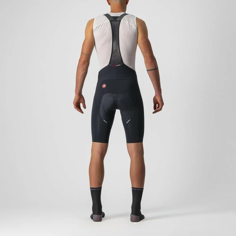 évolution innovante Le cuissard à bretelles Castelli Free Aero RC est notre meilleur cuissard de course, ce qui signifie également qu’il est incroyablement confortable, même si vous ne faites jamais de numéro. On peut dire que nous travaillons sur ce cuissard depuis 15 ans. C’est le nombre d’années écoulées depuis le lancement du premier cuissard à bretelles Free Aero Race, qui était à l’origine notre cuissard de course haut de gamme. Depuis, il a remporté trois Tours de France, trois Giro d’Italia, une Vuelta et San Remo, mais il est aussi devenu le produit le plus vendu de l’histoire de Castelli parce que, tout simplement, c’est le cuissard qui fait tout bien. Le concept est assez simple : commencer avec le meilleur coussinet que nous sachions fabriquer, l’entourer d’un short de soutien avec une bonne compression musculaire, et ensuite enlever tout ce qui n’est pas absolument nécessaire. Vous vous sentez libre grâce au nombre réduit de panneaux et au nombre réduit de coutures. En fait, la partie courte ne comporte que 5 panneaux, contre 10 dans la génération précédente. Vous vous sentez libre grâce aux perfectionnements apportés au coussin de siège sans couture Progetto X2 Air. Les deux densités de mousse et les coussinets en gel assurent un amortissement progressif, tandis que la couche séparée de soin de la peau est douce et extensible pour bouger avec votre peau. Vous vous sentez libre grâce aux bretelles les plus minimales que vous ayez jamais vues dans un short, y compris les bretelles à tissage ouvert pour une circulation d’air maximale. Mais nous avons renforcé l’empiècement pour que les bretelles restent en place et nous avons rendu le dos en maille étroite pour une couverture minimale mais juste suffisante pour maintenir le short en place. Et le dossard encadre élégamment une poche pratique au centre du dos. Vous vous sentez libre car il s’agit du premier short haut de gamme qui ne nécessite aucune sorte de pince ou d’élastique à l’extrémité de la jambe pour la maintenir en place. Pour y parvenir, nous avons dû réaliser 28 prototypes et mettre en place notre programme de tests le plus complet, ce qui nous a permis de créer le bas de jambe le plus confortable que nous ayons jamais fabriqué. Le tissu Forza 2 contient 32 % de Lycra® avec un module élevé pour un soutien musculaire exceptionnel et la bonne quantité de compression. Il y a des bandes réfléchissantes à l’arrière. Et tous les logos sont soit cousus soit gaufrés pour plus de durabilité.