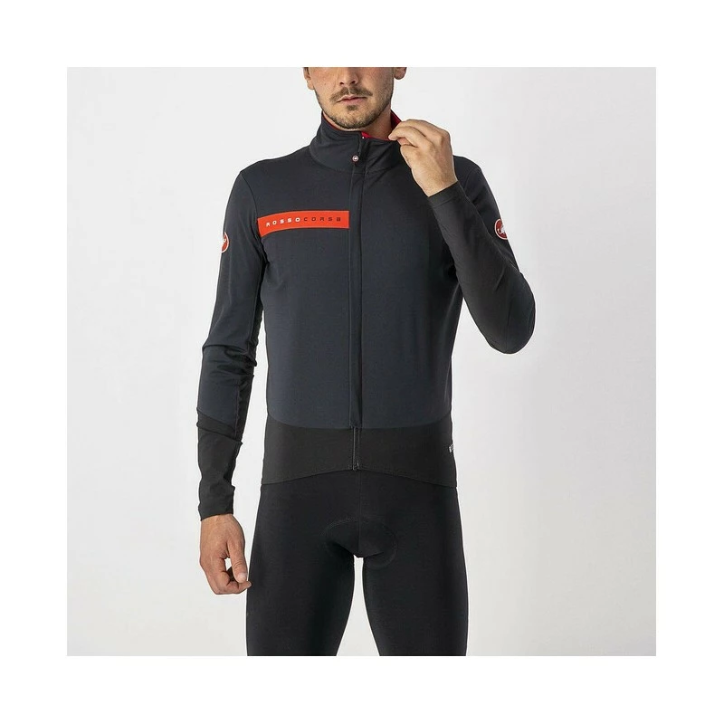 Lorsque l’été fait place à l’automne, il reste encore d’incroyables moments à passer sur le vélo. Mais quand le temps est venu de s’habiller plus chaudement, la liberté de ne porter qu’un maillot nous manque. Voilà la raison qui nous a poussée à concevoir cette veste. Nous avons utilisé les tissus les plus légers et les plus extensibles dont nous disposions pour fabriquer une veste qui coupe bien du vent, reste très respirante, et qui offre un incroyable niveau de protection contre l’humidité. Très compacte, vous l’oubliez presque quand vous ne la portez pas. Comme il s’agit d’un vêtement spécial performance, nous nous sommes concentrés sur ses fonctionnalités principales. Il n’a donc rien de superflu, sauf si vous considérez que le grand panneau réfléchissant à l’arrière n’est pas nécessaire. Nous, nous pensons que si. Avec sa coupe près du corps, aucun tissu ne flotte au vent, ce qui permet aussi de bien vous tenir chaud. Les poches sont généreuses et faciles d’accès, les glissières de zip sont pratiques et les logos sont discrets.